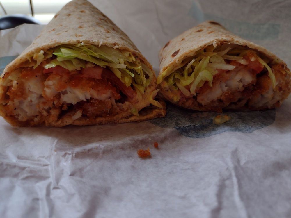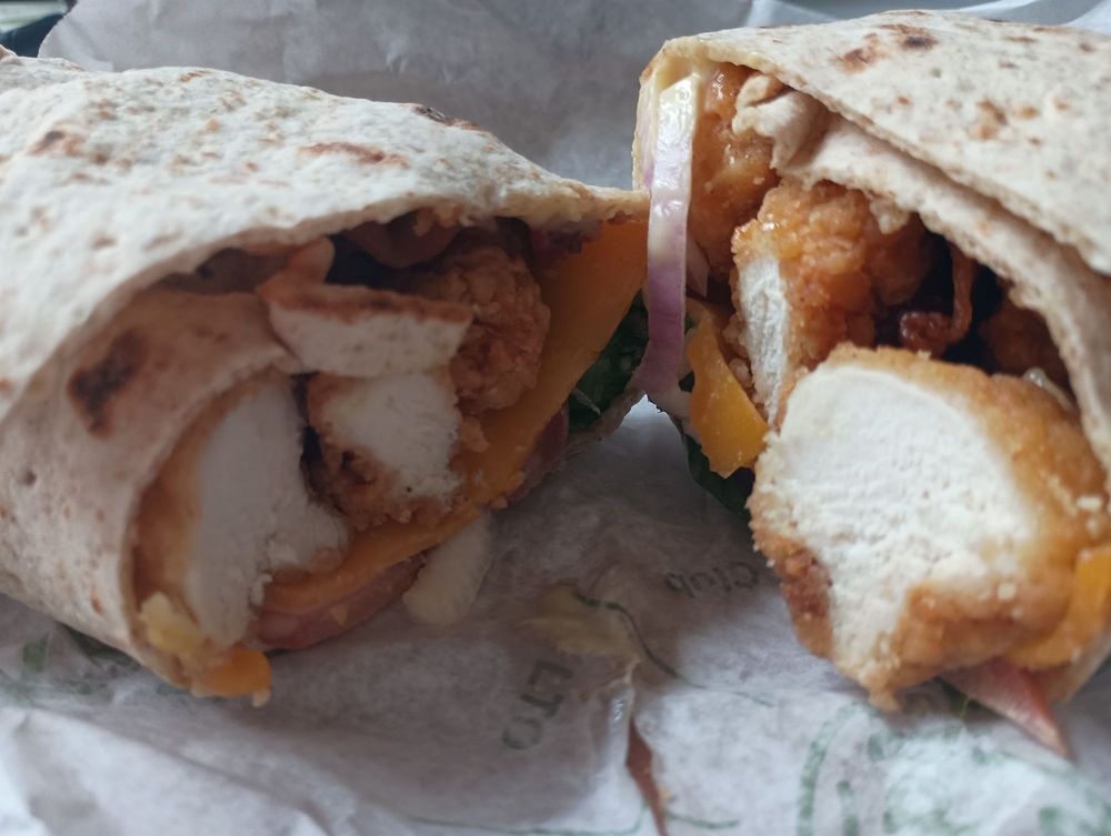 A crispy chicken tender with lettuce and cheddar cheese wrapped in a flour tortilla with Honey Mustard. Limited time only at participating U.S. locations while supplies last.
